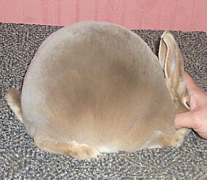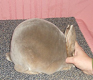 A nice Lilac Agouti doe from Bev Bates, purchased at Convnetion 2011. Although she has nice type, she was bought for her incredible fur!