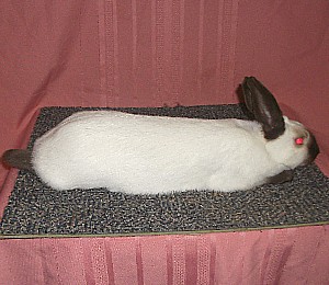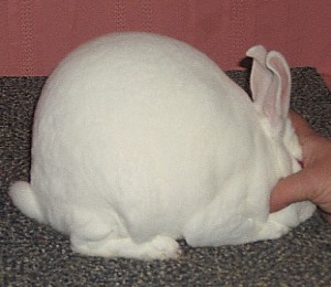 Excuse the pose, but the poor girl is heavily bred in this picture and we did not want to mess with er too much! She is out of McCabe's FeBreeze, a REW bought at the 2011 PaSRBA convention bred to Wombat. Expecting a litter any day now!