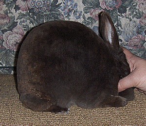 Odd is Wishes' litter mate sister. She has never been shown since she is blind in one eye due to a nest box infection. Odd has great chocolate coloring, and very nice dense plush fur.